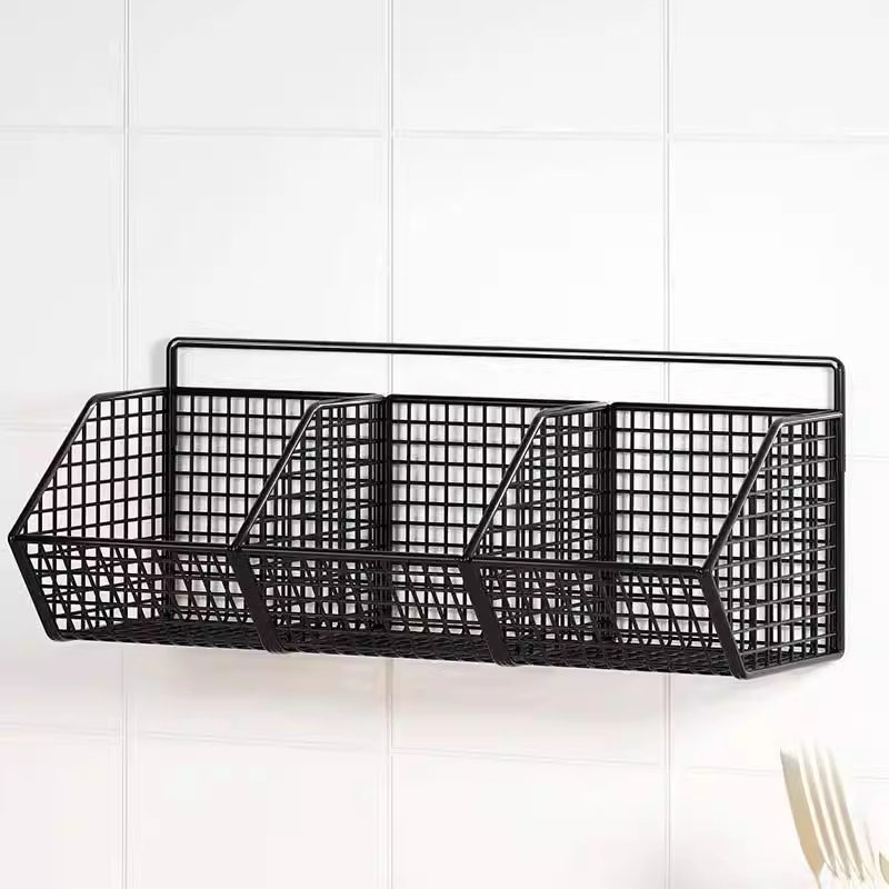 • Kitchen Wall Hanging Storage Rack – Iron Organizer Shelf