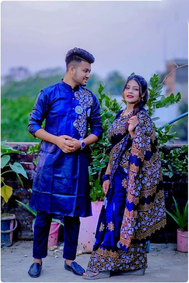 ✔ শাড়ি + পাঞ্জাবি ম্যাচিং কাপল সেট