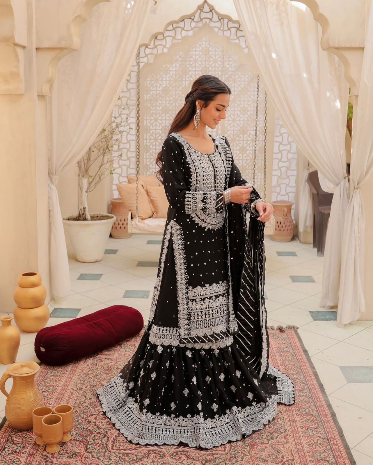 Black Queen Embroidered Three Piece একদম পারফেক্ট আউটফিট।