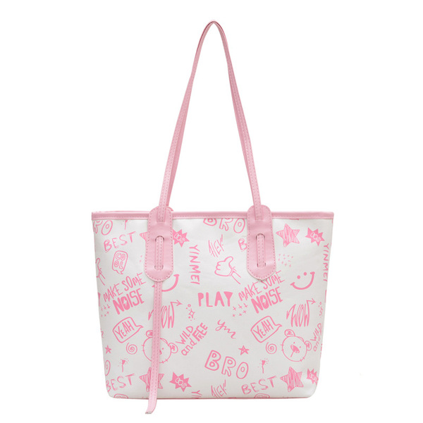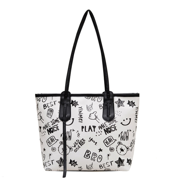 Brown Urban Print PU Tote Bag For Women Handbag