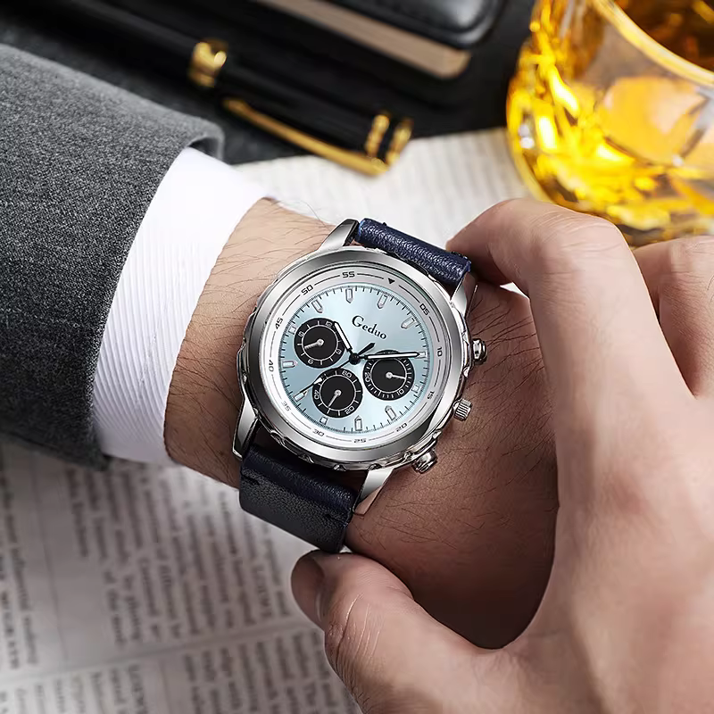 এর three eyes decorative dial, soft leather strap এবং classic round dial design এটিকে করে তুলেছে ক্যাজুয়াল ও বিজনেস স্টাইলের জন্য আদর্শ।