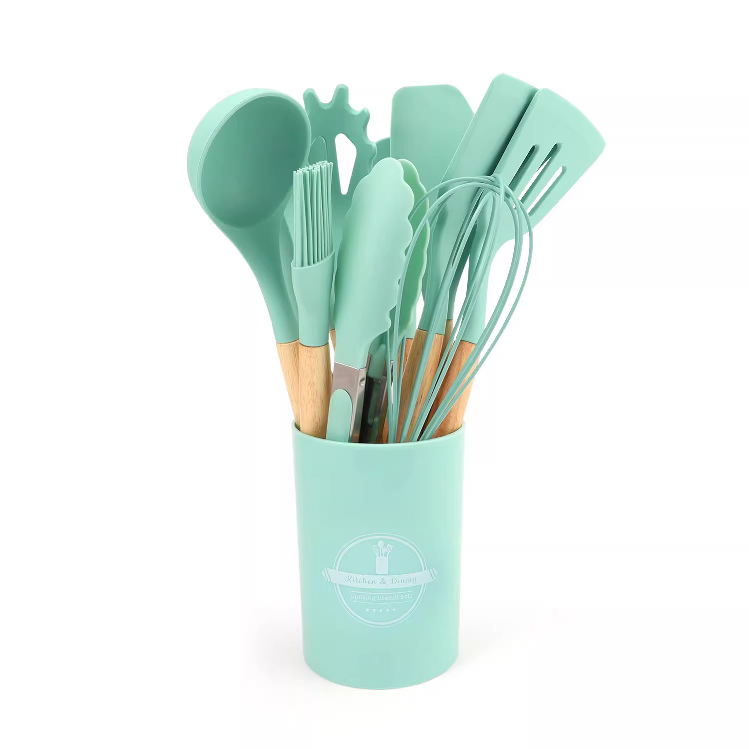 12PCS Silicone Kitchen Utensil Set Wooden Handle